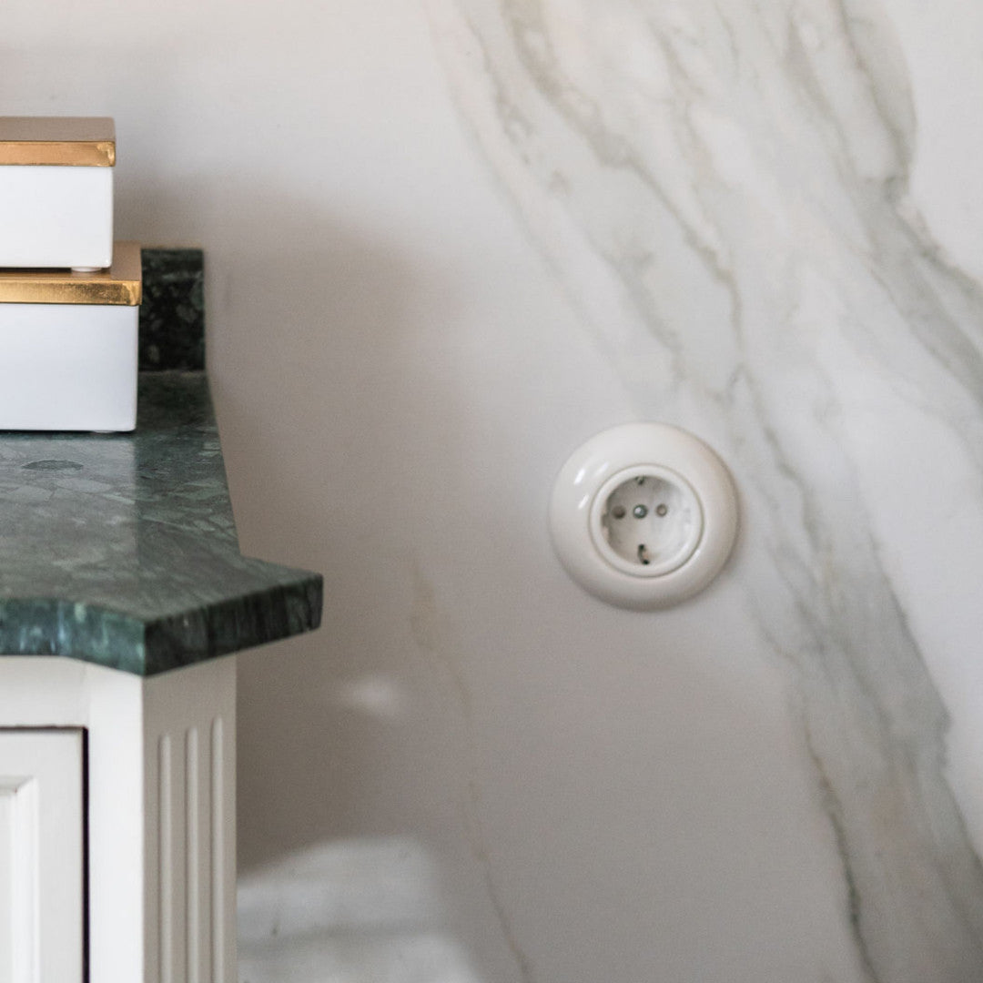 Upptäck möjligheterna med strömbrytare och vägguttag i vitt porslin från THPG.