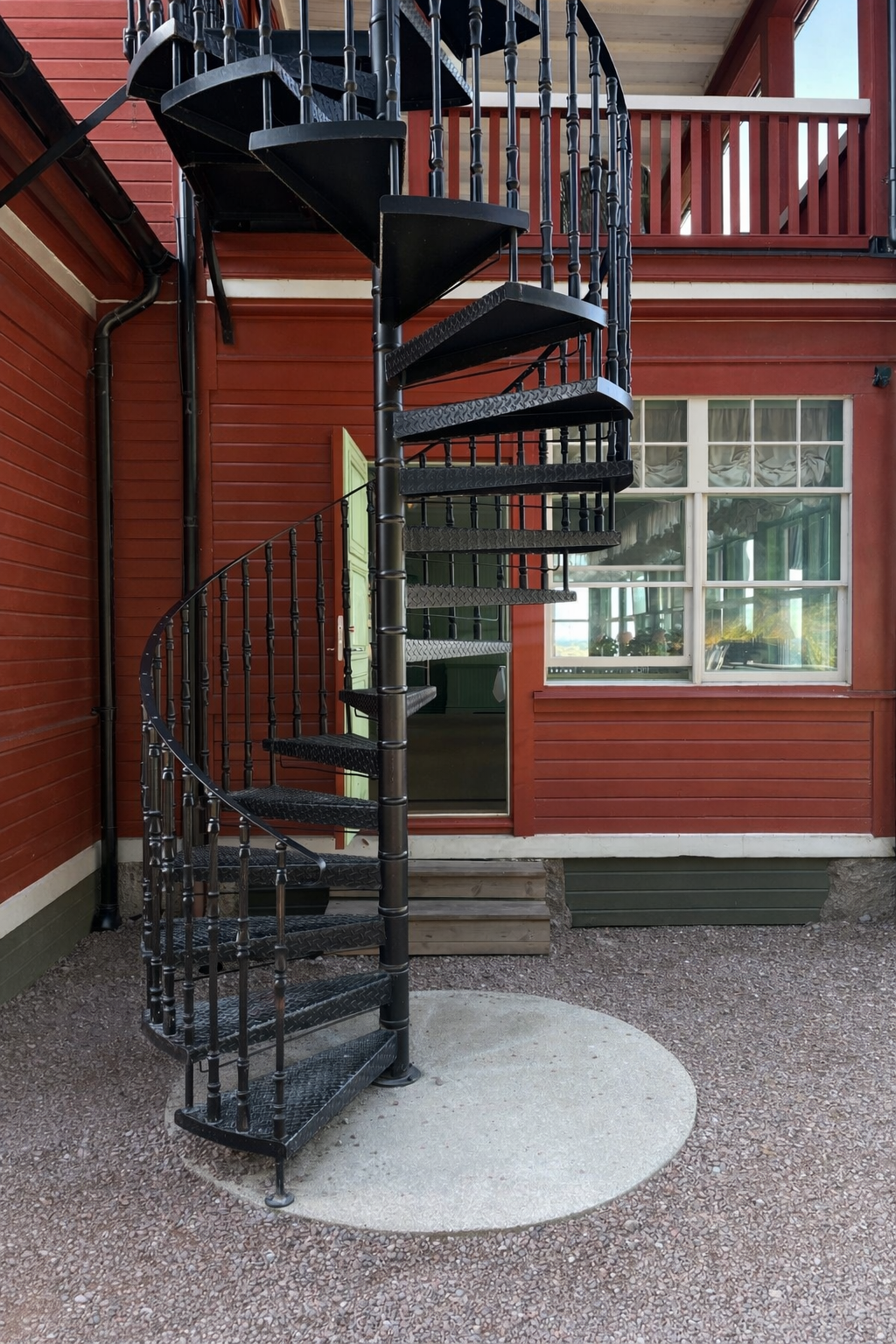 I många projekt fungerar spiraltrappan även som utrymningstrappa, där säkerhet och tillgänglighet är avgörande. Med halkskyddade steg, stabil räckeshöjd och tydlig gånglinje uppfyller den höga krav på trygghet, utan att kompromissa med det visuella uttrycket. Resultatet är en genomtänkt utomhuslösning som kombinerar design, hållbarhet och funktion i ett och samma grepp.