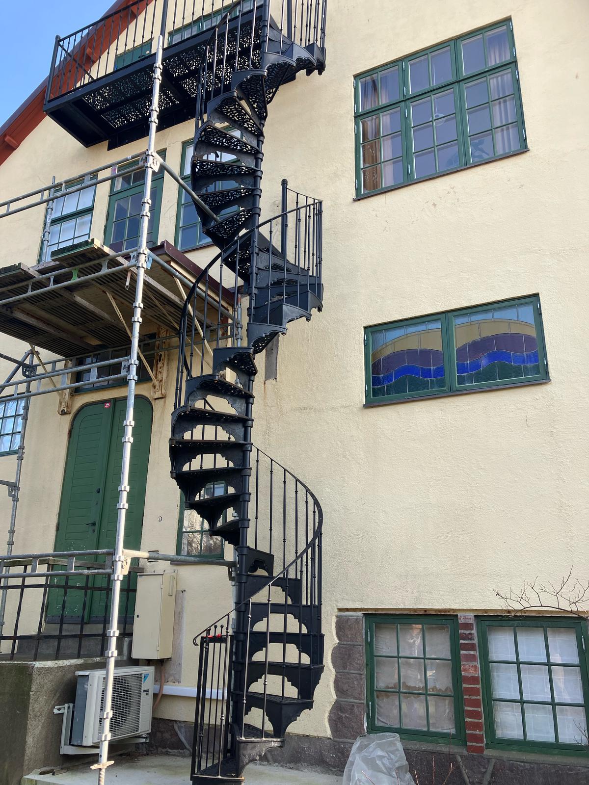 Använd en spiraltrappa utomhus som en utrymningstrappa