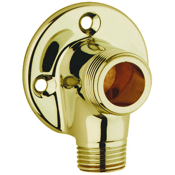 Enkelt blandarfäste 12015 i mässing för utanpåliggande rördragning. Blandarfästet har R15 ingång (nedåt på bilden) och R20 blandaranslutning (standard för europeiska blandare). Blandarfästet fäst med tre skruvar i vägg (medföljer ej ?utan anpassas efter väggens typ). Det behövs två till ett normalt montage.