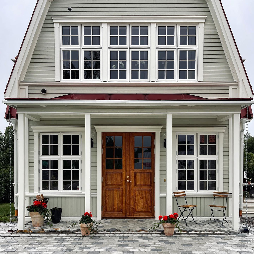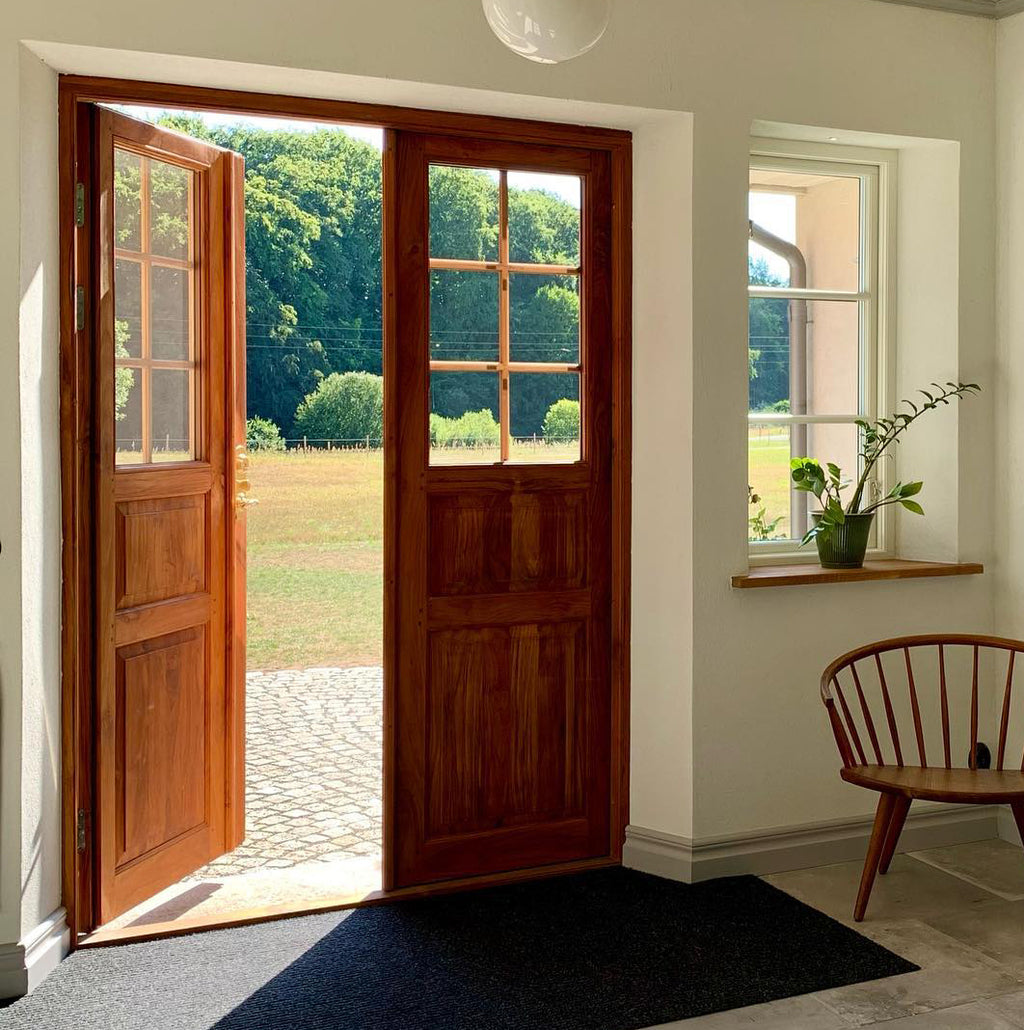 Klassisk pardörr tillverkad i oljad FSC-certifierad teak som levereras i standardmått med bredd 1280 mm, 1380 mm eller 1480 mm och höjd 2080 mm. En tidlös ytterdörr som passar lika bra i sekelskifteshuset med putsad fasad som i ett hus med träpanel. Dörren tillverkas för hand i Qvesarums snickeri och levereras komplett i karm. Gångdörren till höger och den passiva dörren till vänster. Tröskel i oljad teak. Dörrens övre del är glasad, vilket ger ett fint ljusinsläpp till hallen innanför. Fönstret är en isolerglaskassett med utanpåliggande spröjs i trä. Det ger ett härligt ljusinsläpp till hallen. Kivik har både spröjs och speglar, vilket bidrar till en gammaldags känsla. Dörren levereras komplett i karm och med låskista. Tryckespaket säljs separat.