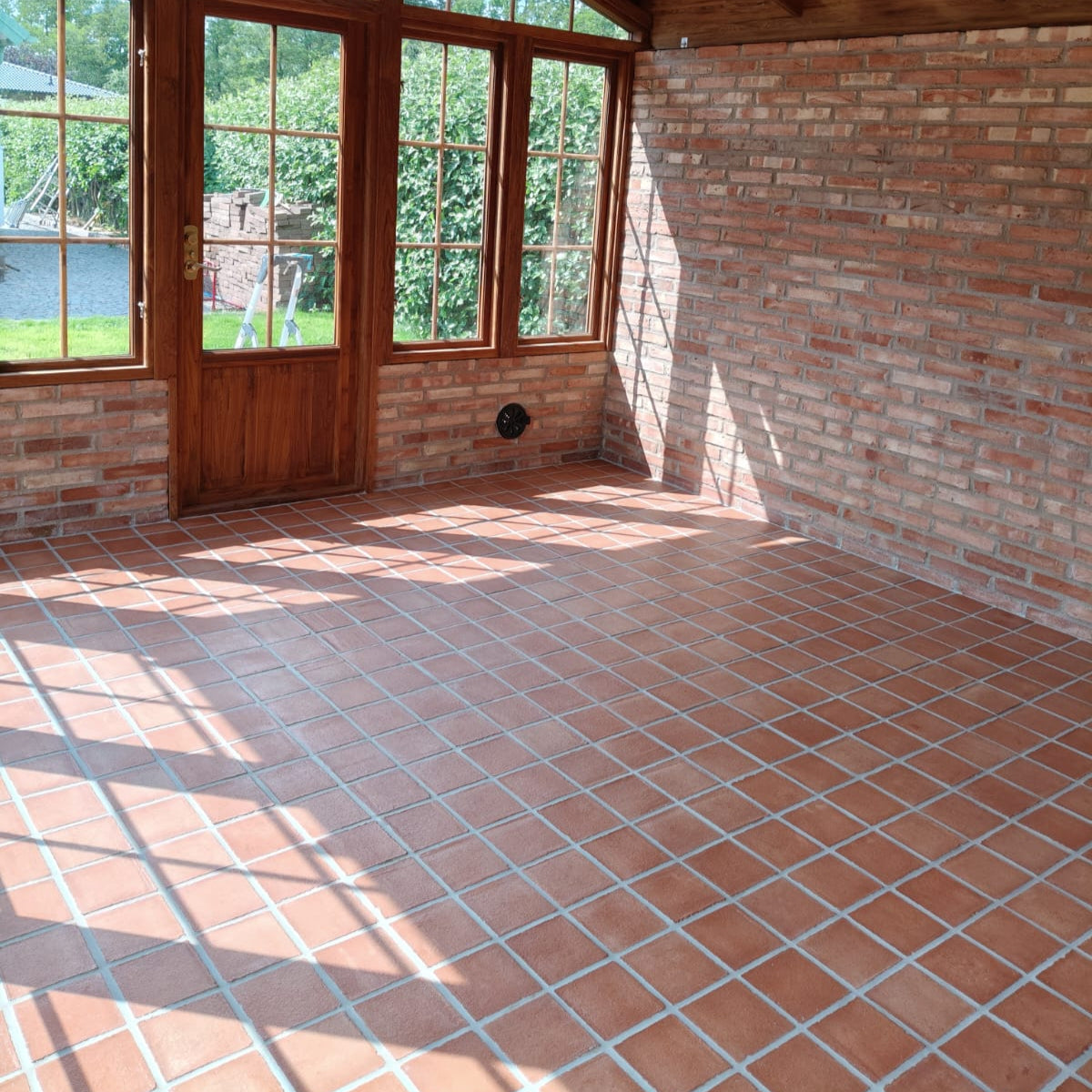 Detta golv är avsett att läggas inomhus under tak. Den går utmärkt att lägga i växthus och orangerier eller inomhus. Om du istället vill ha en platta att lägga utomhus rekommenderar vi vårt marktegel som finns i olika modeller och som är anpassat för att läggas utomhus.