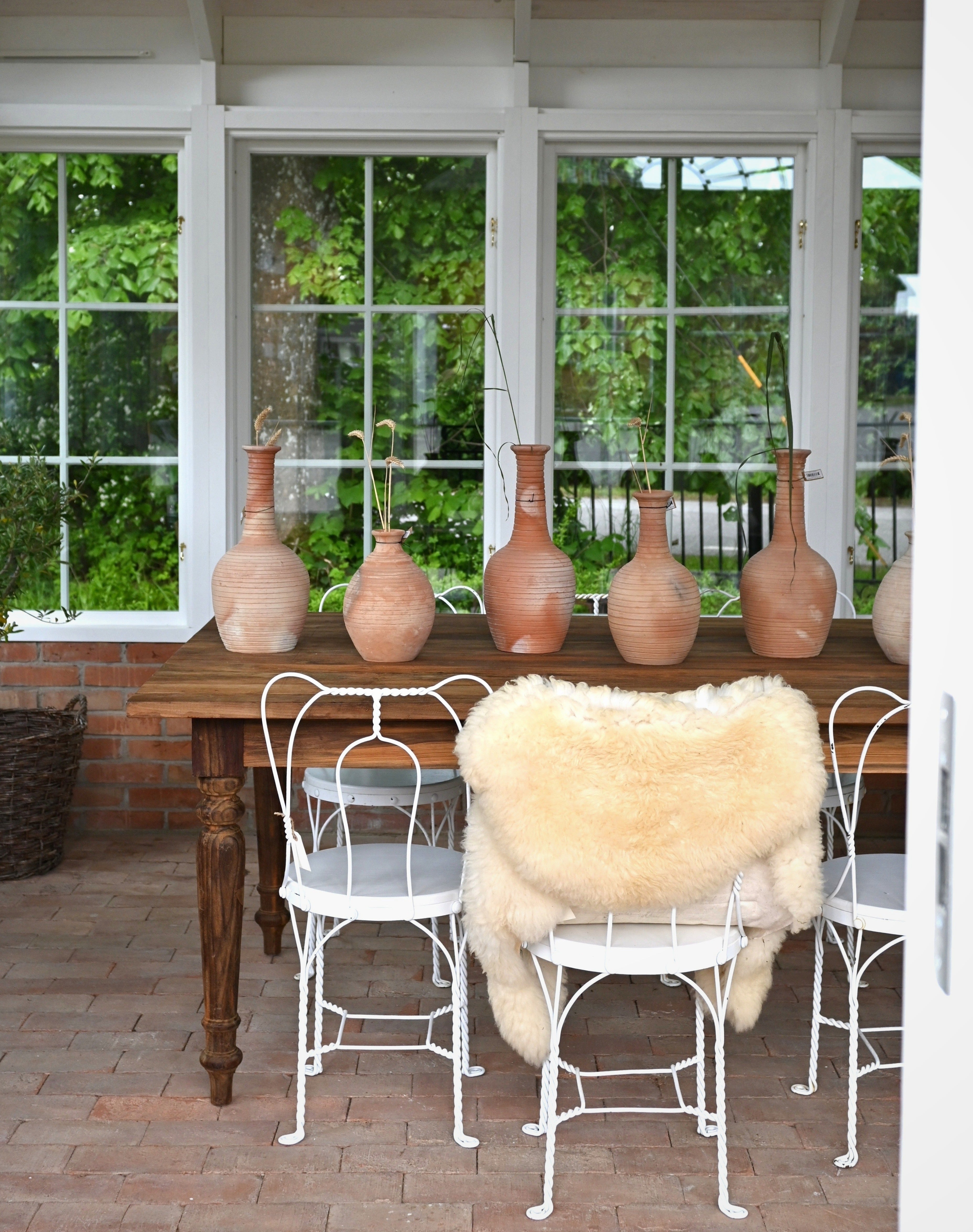 Tillverkad i porös lera – en påminnelse om materialets naturliga ursprung. Använd gärna ett vattentätt fat som skydd för ytor, då urnan inte är glaserad invändigt och kan släppa igenom fukt.