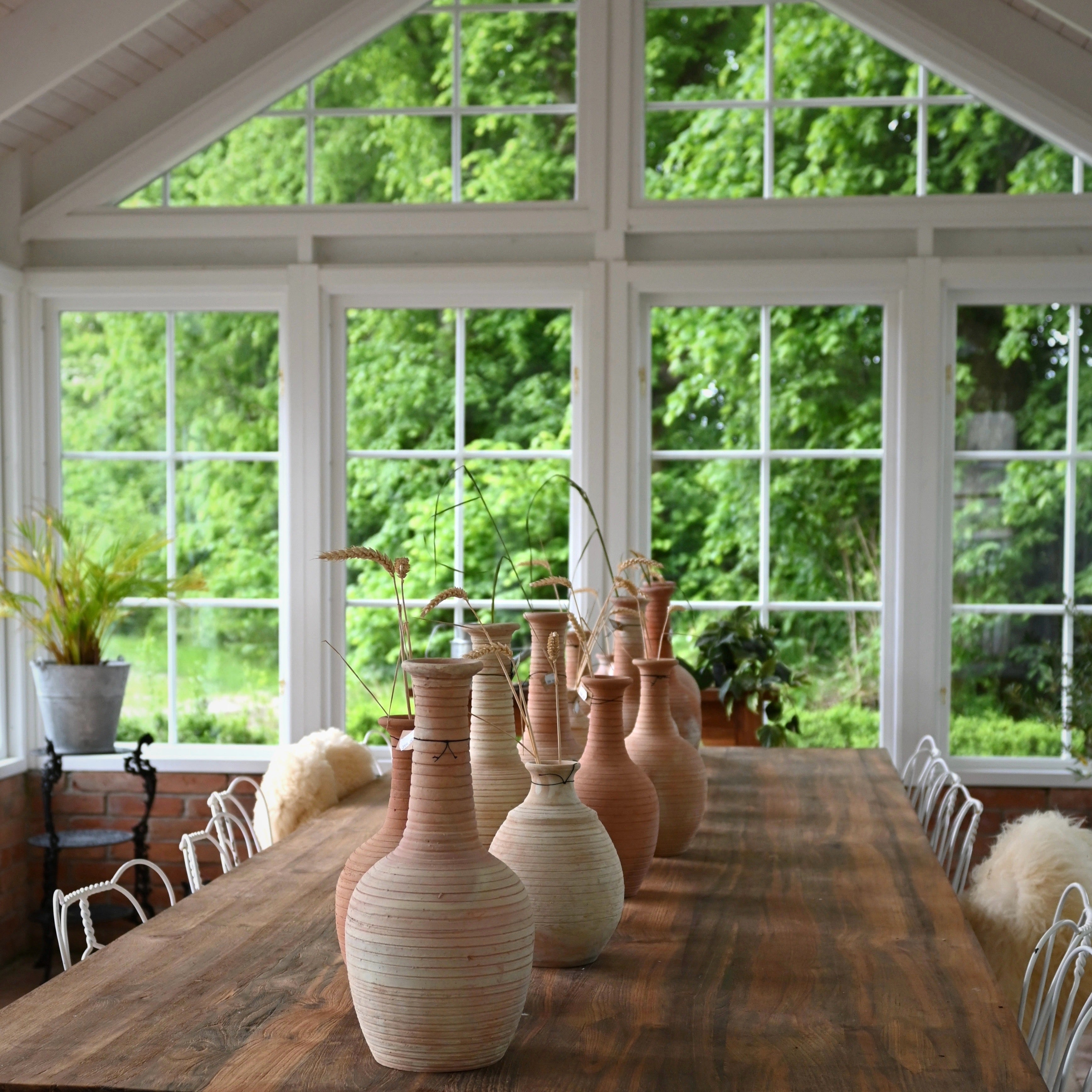 En vacker urna som andas hantverk och personlighet. Denna dekorativa terrakotta-urna är handgjord med varsam hand i lera, vilket gör varje exemplar unikt i färgskiftningarna. Den levande ytan och de organiska variationerna ger urnan en rustik charm som passar lika fint i det moderna hemmet som i mer lantliga miljöer.